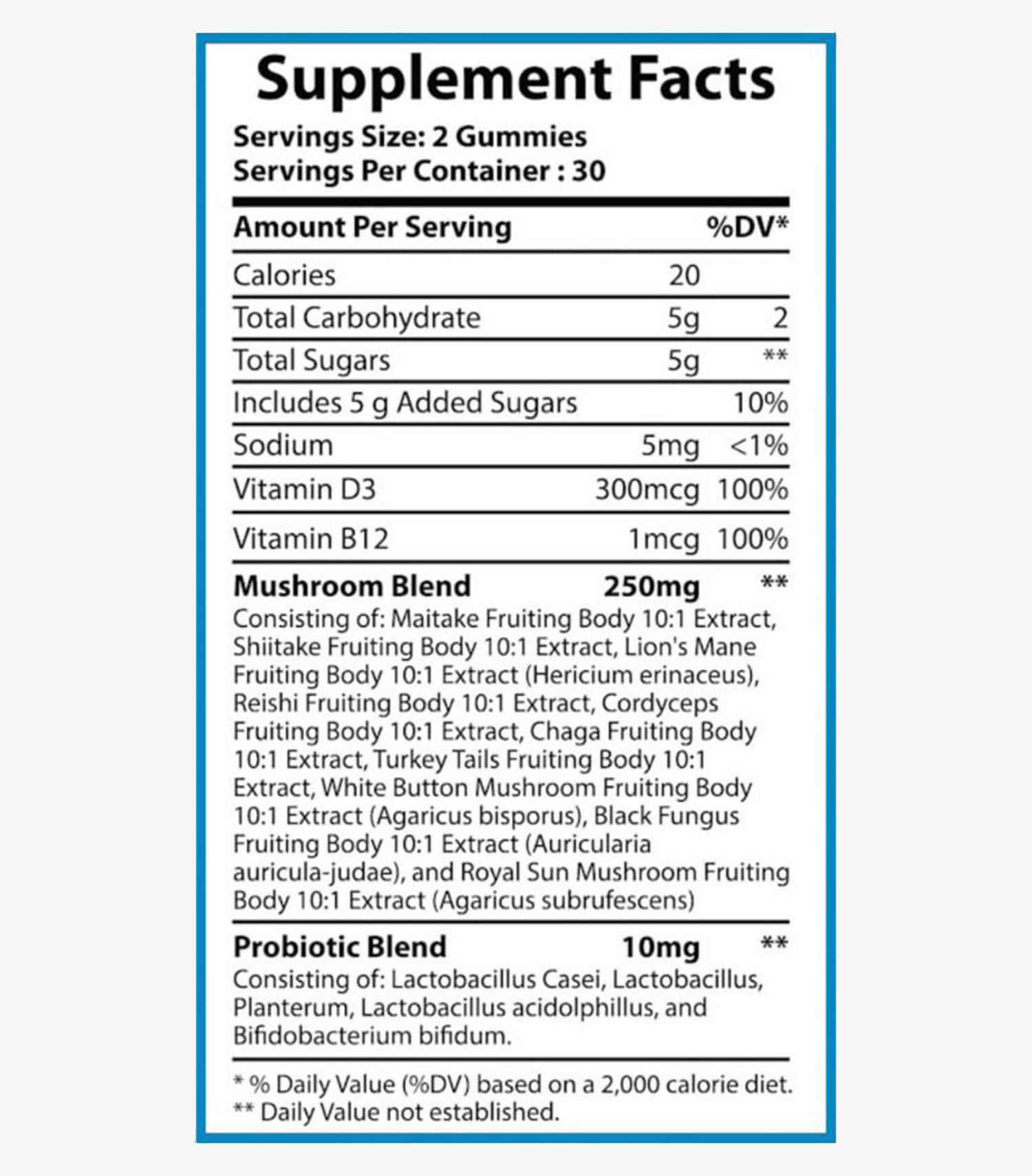 View the supplement facts image above for a detailed list of our ingredients, their amounts, and % Daily Values. Our supplement is carefully formulated to provide optimal support for your health and well-being.
