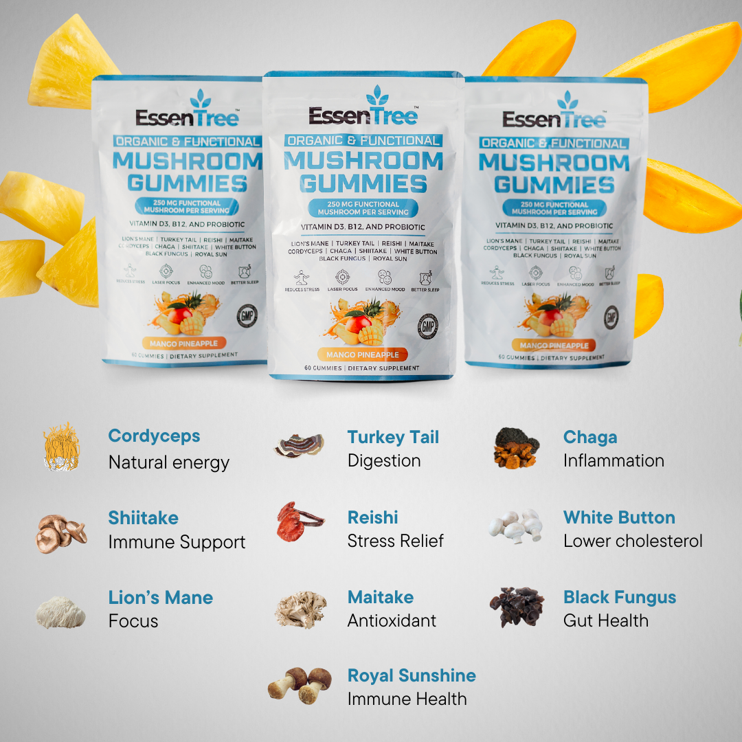 Discover the power of EssenTree! Its unique blend of hericenones and erinacines may help improve focus, boost memory, and even support a positive mood.